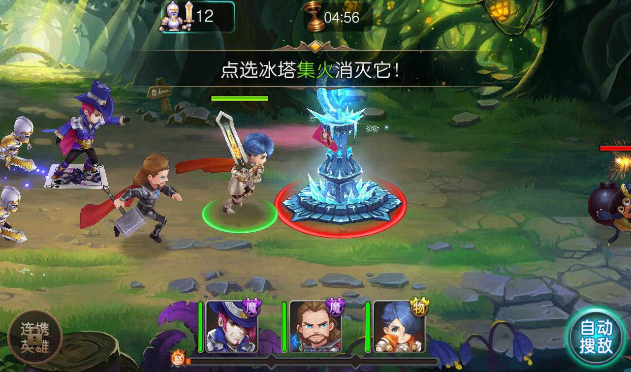 这是一款横版MOBA卡牌手游。轻松简单的操作,实现推塔战场、英雄走位,兵线配合,即时战略等MOBA玩法。玩家可以收集并组建自己的英雄战队,通过合理的排兵布阵和战术策略摧毁敌军魔塔,并歼灭对手。