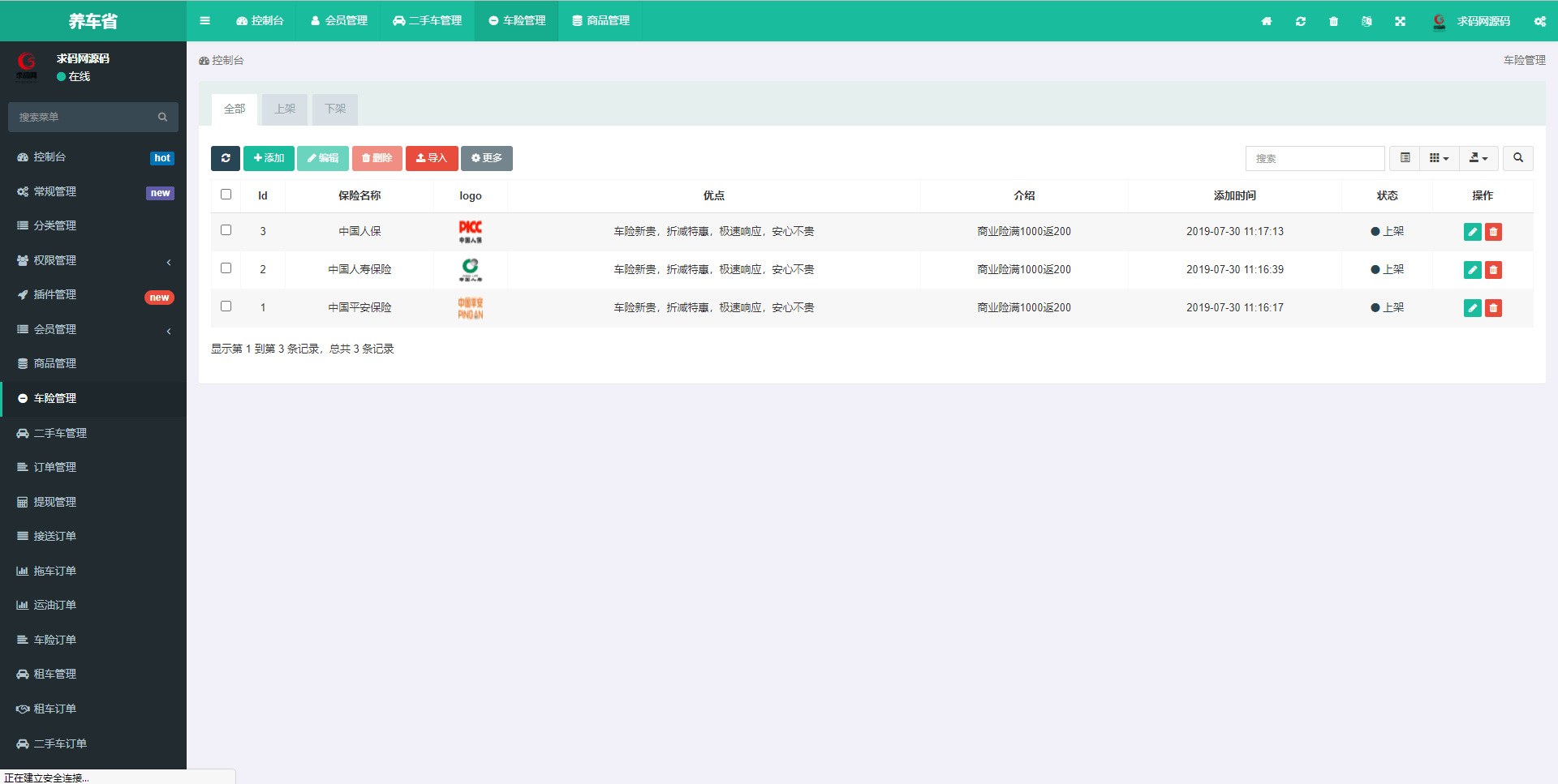 源码采用FastAdmin框架开发,功能成熟完善,已有成功案例。业务涵盖保险、二手车、接送、 拖车、租车、保养、维修、入驻等连接线上等基础和深度服务。采用的是“线上 + 车主直控社区加盟店” 模式 其主要考虑是布局门店有助于让目标消费用户产生对嗨修养车的信任。线上预约+社区门店+上门服务全覆盖运营模式。 安装说明在文件包里。