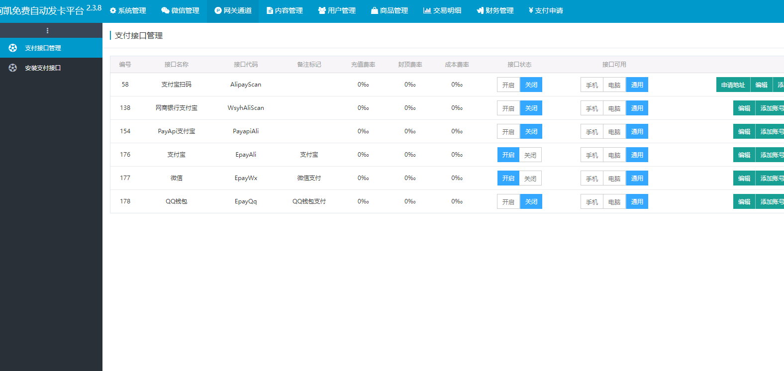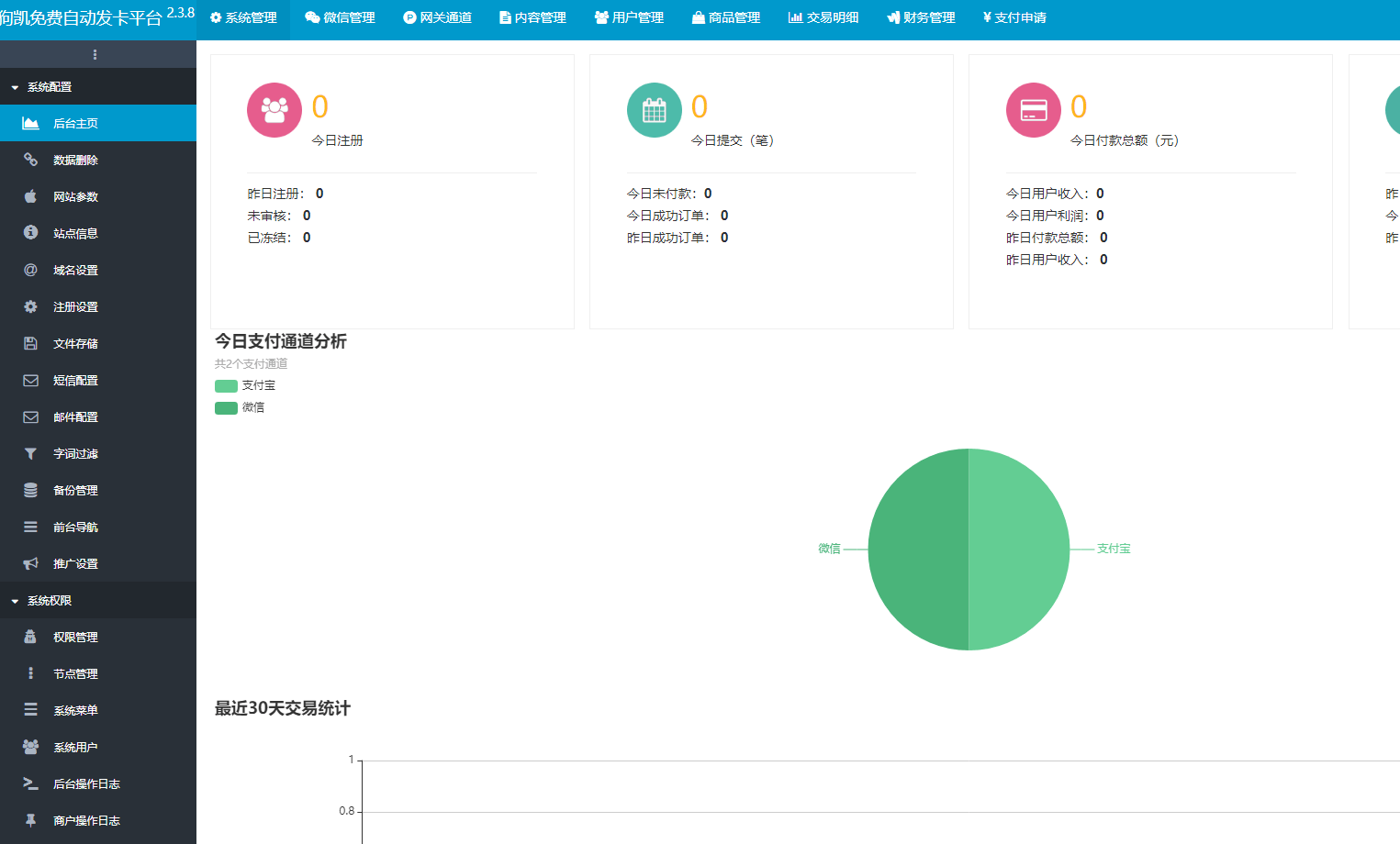 商户功能也正常,可以自助注册商户,带有独立的商户后台。里面带有几十种支付接口。带有个人免签和易支付。