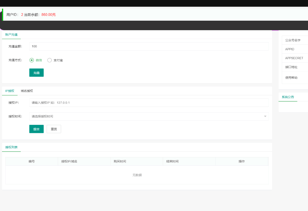 目前支持对接易支付,支持用户自助充值,自助购买授权,支持自助更换授权,支持自助续费授权