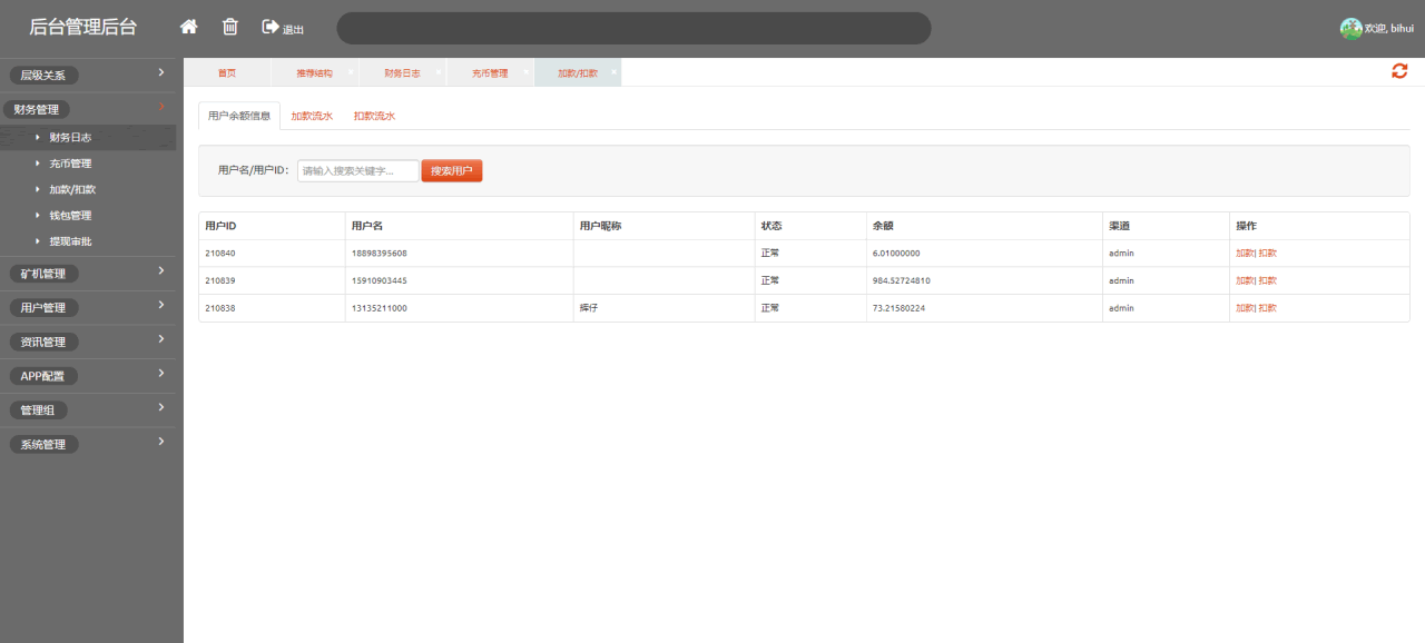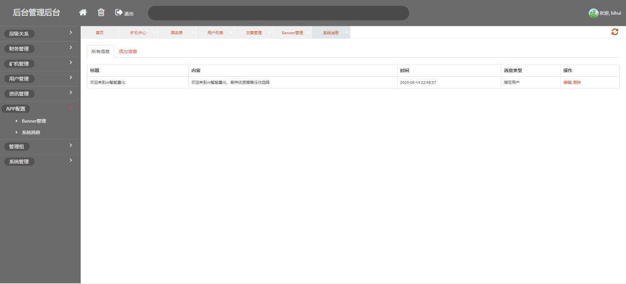 1、可以使用usdt购买矿机,可上线多币种,上交易所以后,USDT充值 官网行情数据接口 平台转账,coinbase接口所有币种自动换算人民币 2、直推奖励,根据矿机购买币种不同,而不同 3、无线性释放,矿机所产收益,自动扣除技术服务费,剩余一次性到账结算,每天凌晨2点结算前一天的矿机收益 4、矿机有封装期,封装期不产币,封装多少,按封装多少自动产币封装期结束以后自动开始结算收益 5、根据区块浏览器的实时产币信息,后台填写每T的产币量,用于结算 6、有直推奖、团队奖、产能奖、同级奖,间推奖,可以定制 7、后台可管理会员信息、矿机信息、奖励信息 因某些原因,该源码无安装教程,该源码只供群员们学习研究用,不得用于商用。