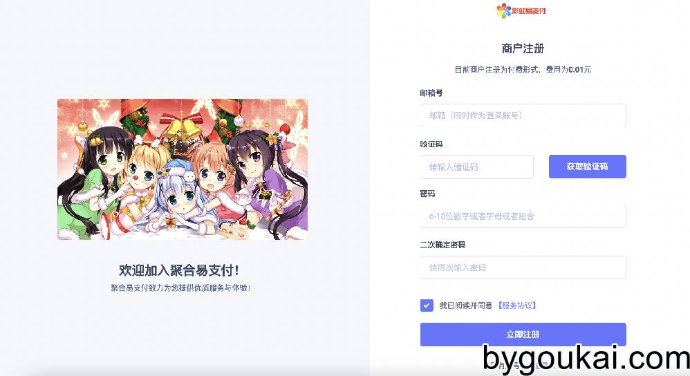 彩虹易支付注册页面美化页面,喜欢的可以去修改了。