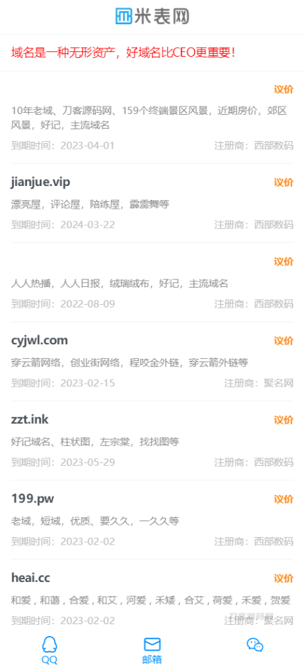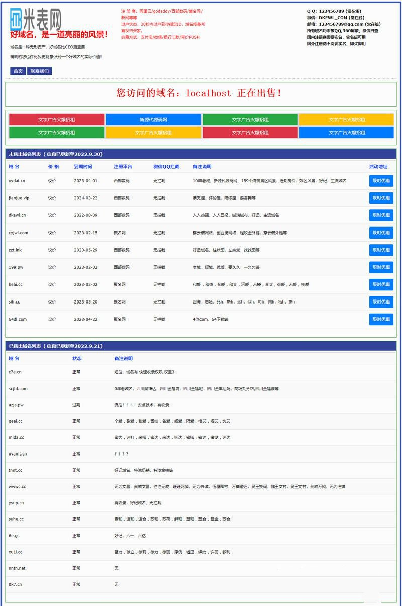 勇帅米表系统_域名展示出售系统 PC+H5双端自适应页面