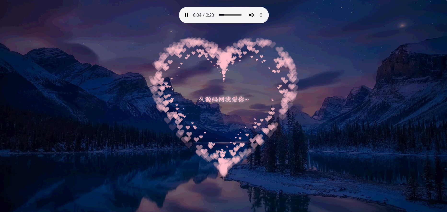 这是一个CSS样式代码段,可以设置一个背景图片(背景文件.webp.png.gif)作为网页的背景,同时添加一个半透明的深色浮层(body::after)叠加在背景图层上。样式代码还包括了设置一个音频和一个“love_you”文本的绝对定位,位置居中,以及一些文本颜色、字体、大小、阴影、动画等效果。