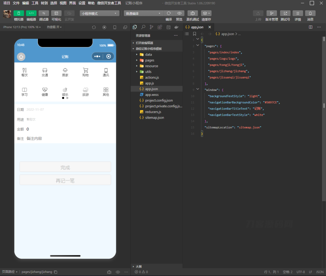 一款实用的记账列表,分类记账,生活记账小程序工具。包含:添加记账、编辑记账、统计分析、计算器等4个页面。