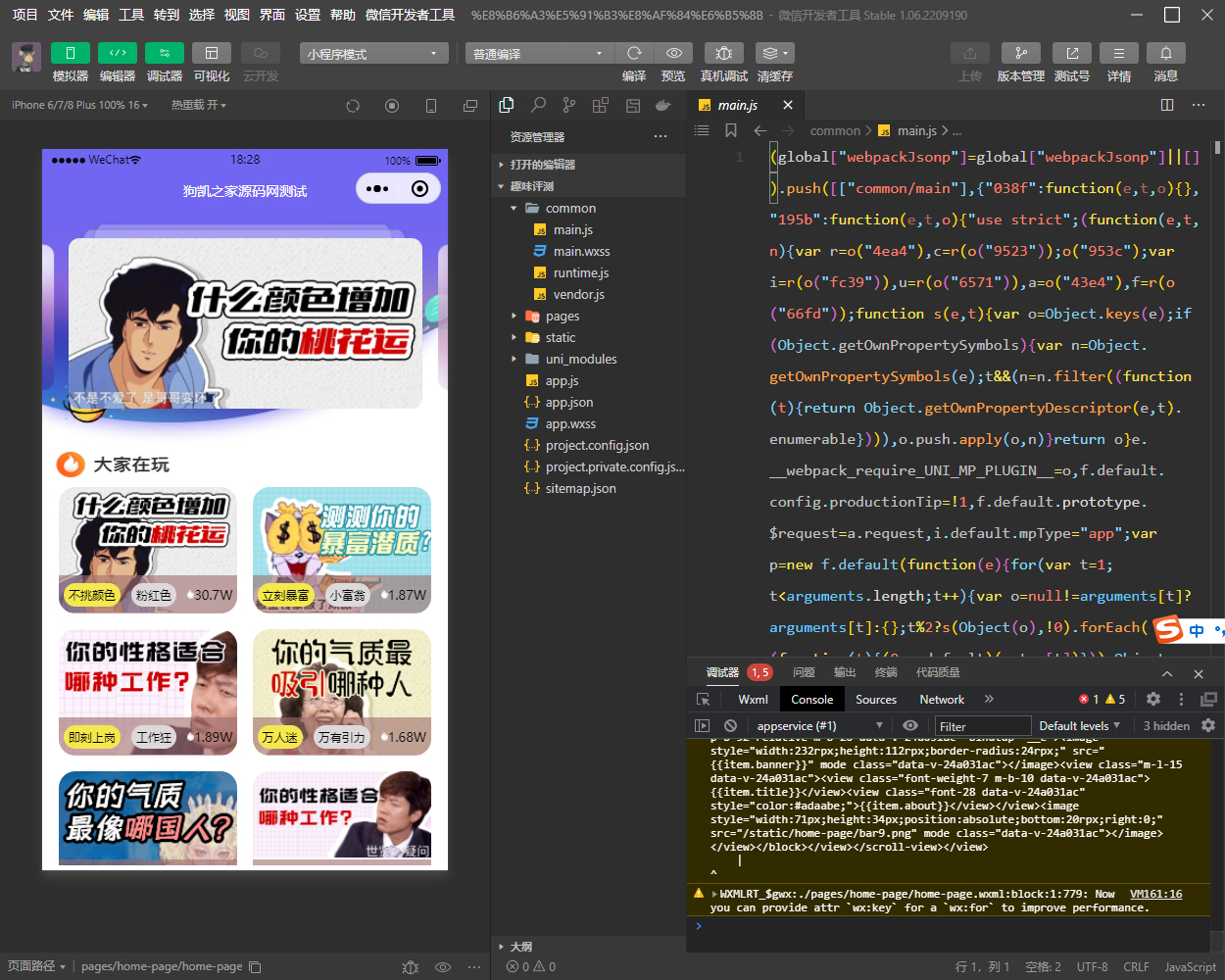 前段时间刷短视频,突然看到一个测IQ的小程序广告 好不容易答完题了,结果要钱才给结果。 感觉这是一个很好的赚钱项目,就找来这个源码了。