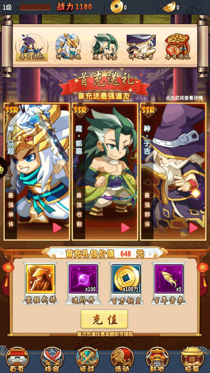 该游戏是一个Q版风格,建立在一个以三国世界观下的大型沙盒战争策略游戏,玩家将扮演三国时期的城主,生产战略资源、笼络名士猛将、征召百万雄兵参与到十三州的领土争夺中。游戏原创萌胖系美术风格,内外细节极致的沙盒,,200多位三国时期的史诗武将供您选择,独特的军团组建玩法,占领土地,掠夺玩家城池,通商贸易,部队驻扎,占领史诗城池,独特的城池内政建设,特色社交系统,战斗战报等等让您体验到不一样的三国,带给您全新的游戏体验!
