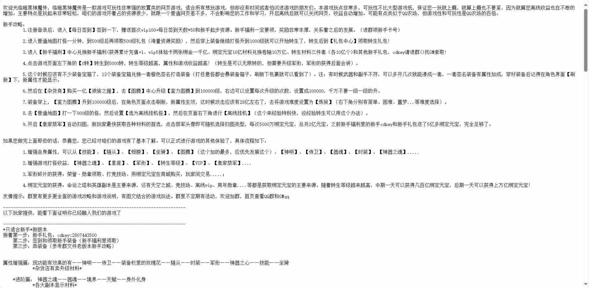 暗黑神魔传是一款游戏可玩性非常强的放置类的网页游戏,适合所有想玩游戏,但却没有时间或者怕沉迷游戏的朋友们。