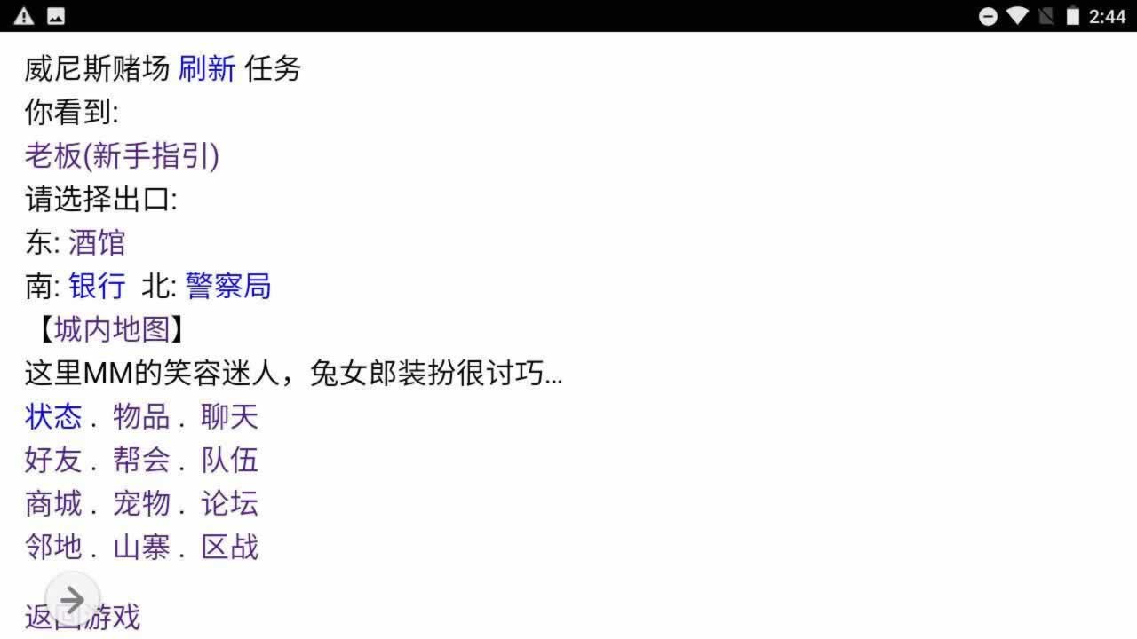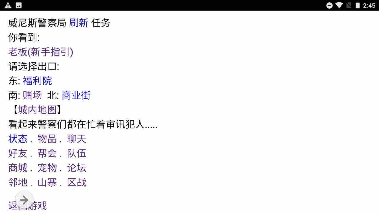这是一款角色扮演类型的wap文字游戏,游戏背景设定在大航海时代,在这款游戏中玩家可以化身成为一名冒险者,组建自己的船队,成立自己的帮派,攻城略地争霸四海。这里有数以万计的庞大任务体系等着你来做,各色的副本与套装等你去探索与铸造。