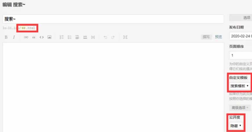 按照下方截图的方法设置独立页面,然后将页面网址填写到主题设置里
