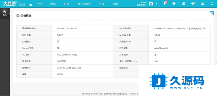 大商创开源版最新版——新发布b2b2c多用户商城系统,性能卓越,视觉体验更佳 强过现在市面上的其他b2b2c多用户商城系统!包含PC+WAP端+微分销! 运营环境: PHP5.6+MYSQL 特点: 内置7款漂亮模板,功能强大,独家搭建视频教程,和那些几百的源码一个样,全开源!