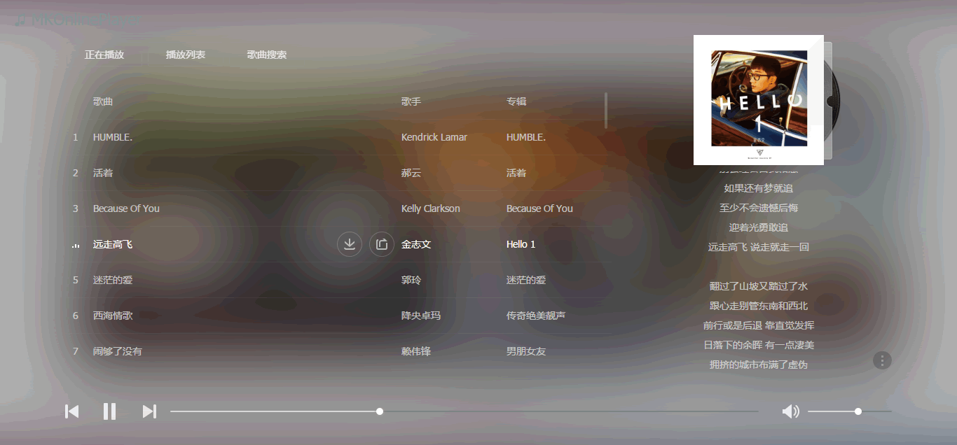 MKOnlineMusicPlayer 是一款全屏的音乐播放器 UI 框架