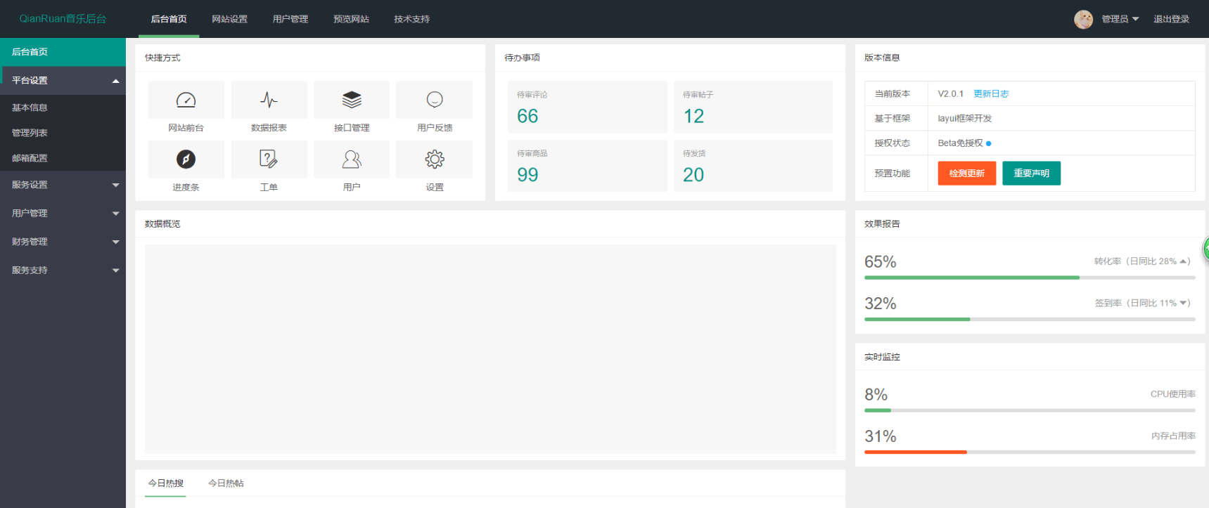 前端界面参照 QQ 音乐网页版进行布局,同时采用了流行的响应式设计,无论是在PC端还是在手机端,均能给您带来原生 app 般的使用体验。