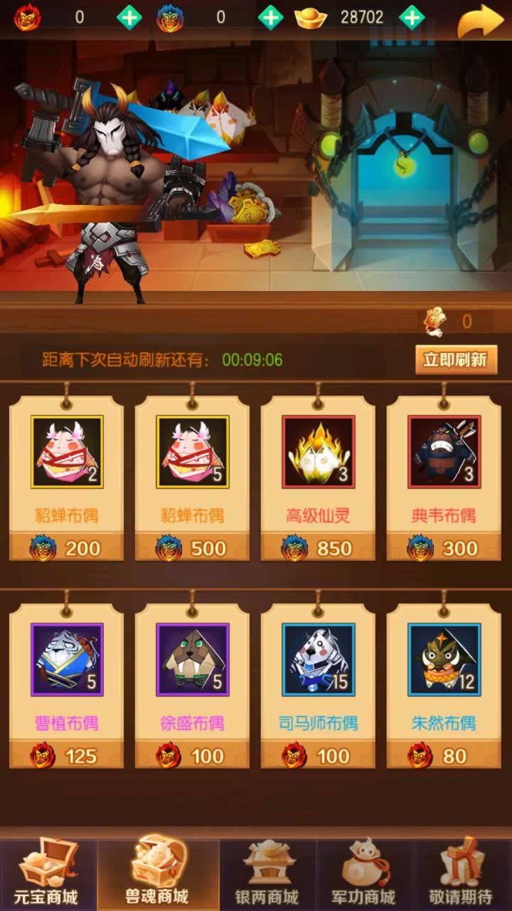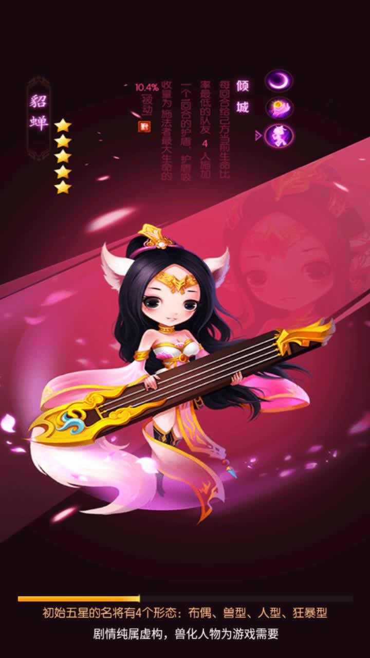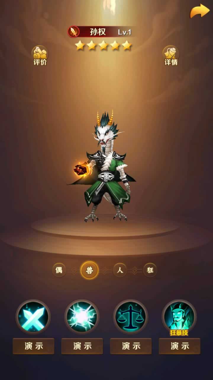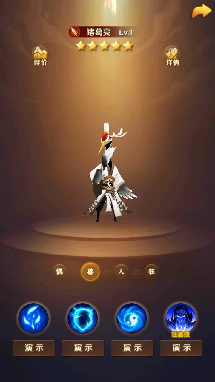 这是一款回合制策略手游。游戏讲述了魔帝徐福试图控制三国世界,三国名将全部被兽化成为野兽。玩家需要在游戏中不断收集各路名将,帮助被兽化的三国名将恢复人形对抗魔帝,培养组合属于自己的最强军团来应对各种战斗。