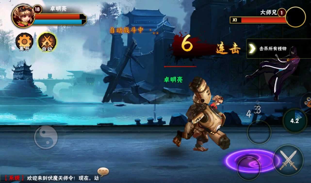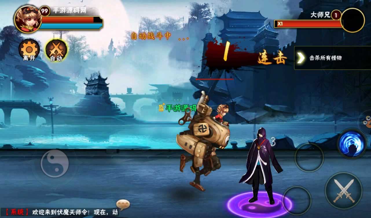 这是一款横版格斗动作类手游大作,并融入当下热门的暗黑风格,画风精美细腻,打斗激烈畅快,剧情跌宕起伏,必将带给玩家耳目一新的感觉。 八方妖魔,满目,魑魅魍魉厮杀,咒结,十万寒鸦也不过天狗幻化,倾轧,血亦为剑何惧怕, 伏魔天师令降世,恶灵闻风魂退散。