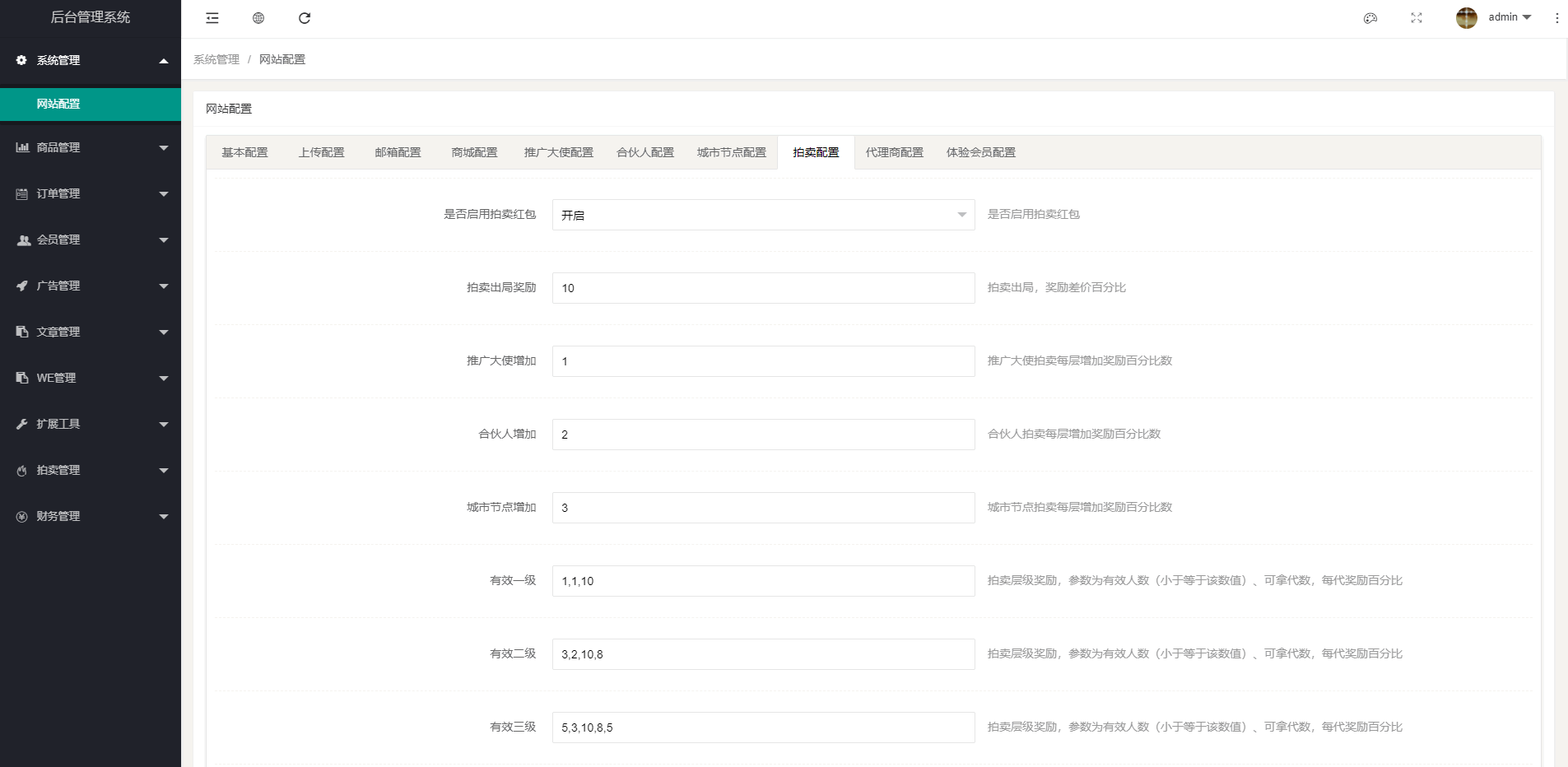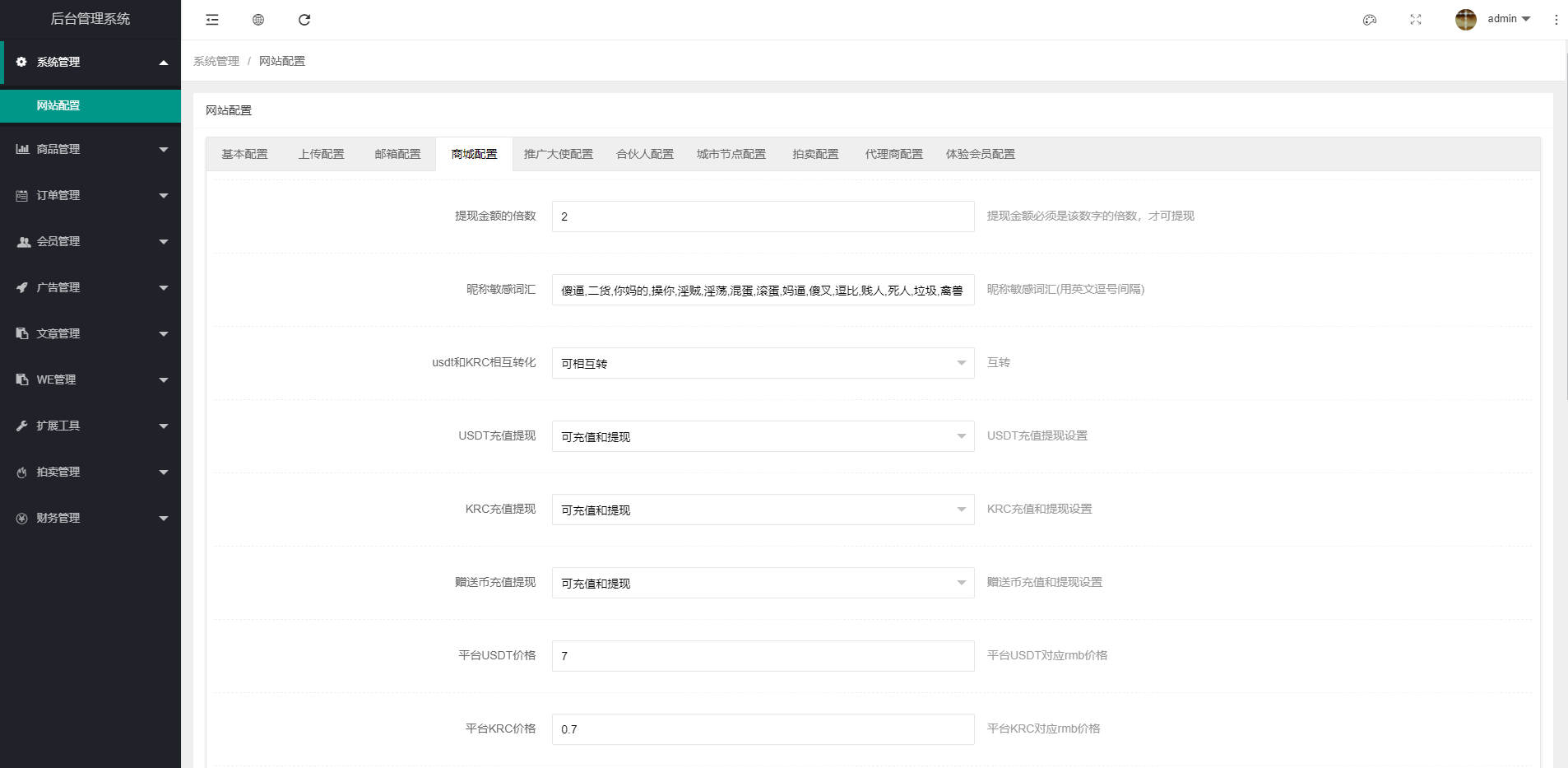 跨境商城系统/拍卖系统/竞拍系统/高端商城/虚拟币支付 大概看了下,大概就是一款跨境高端商城系统 系统附带竞拍功能、推广功能、合伙人、虚拟币支付功能、原始股等功能,反正看着比较牛逼的东西