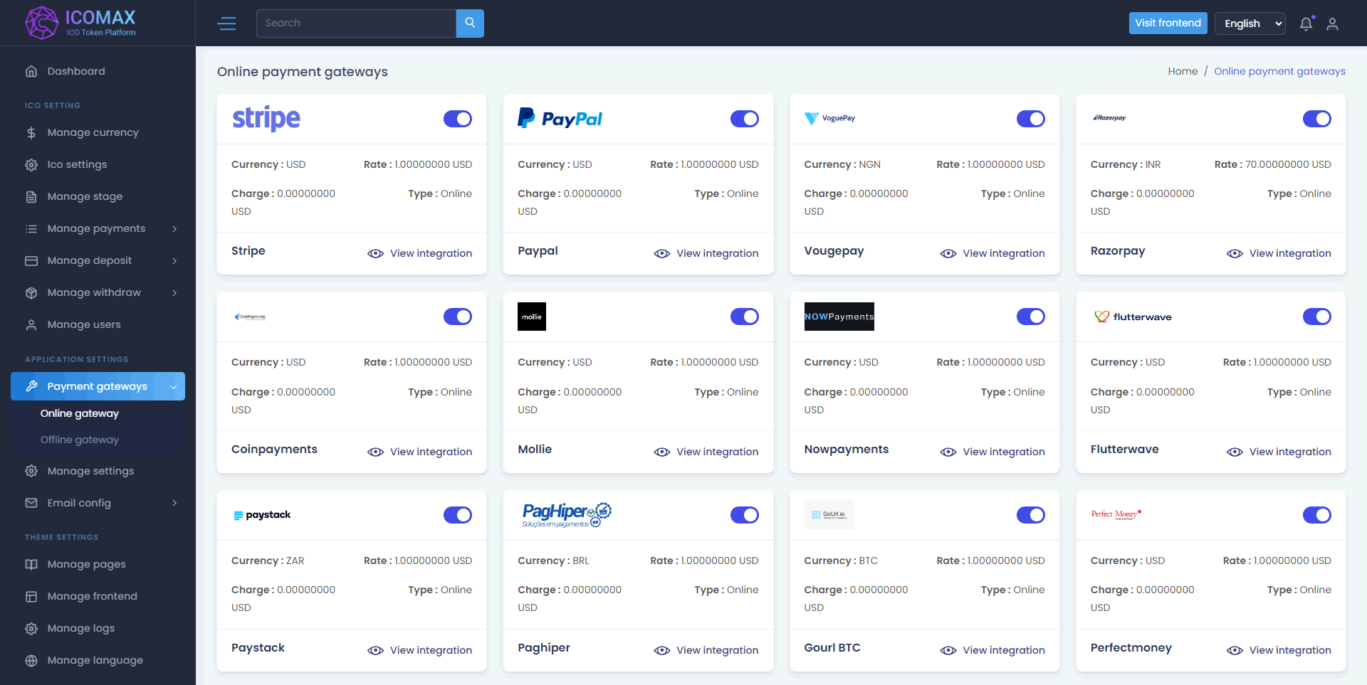 ICOMAX Token Sale & Auction Platform 是一款功能强大的数字资产交易平台,为用户提供了安全、高效的交易环境。该平台基于最新的 Laravel 8.x 框架开发,具有易于安装、多语言支持、在线/离线支付网关、KYC、电子邮件和短信验证等特色功能。此外,ICOMAX 还支持多种支付网关,包括 Razorpay、Coinpayment、Mollie Payment、NowPayments、PayStack、Flutterwave 等。用户可以使用法定货币和多种加密货币进行阶段性销售,并享受拍卖和聊天等功能。无论是个人用户还是企业机构,ICOMAX 都能满足其数字资产交易的需求。
