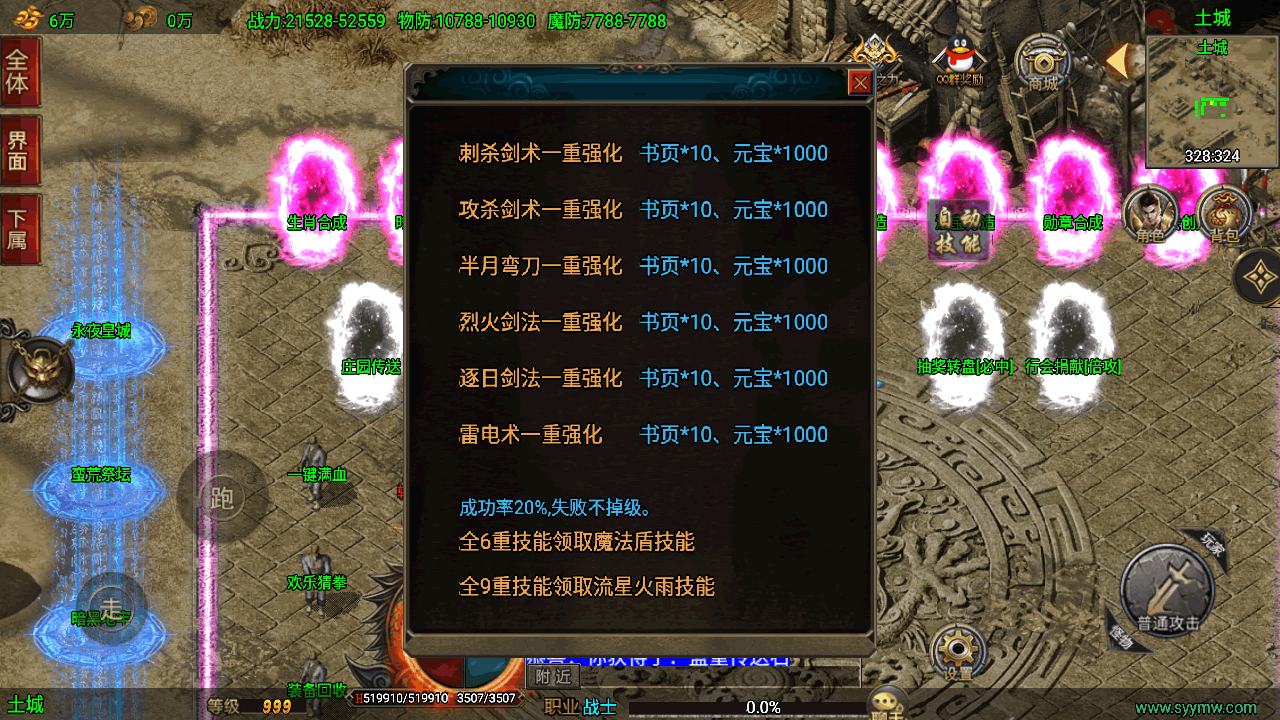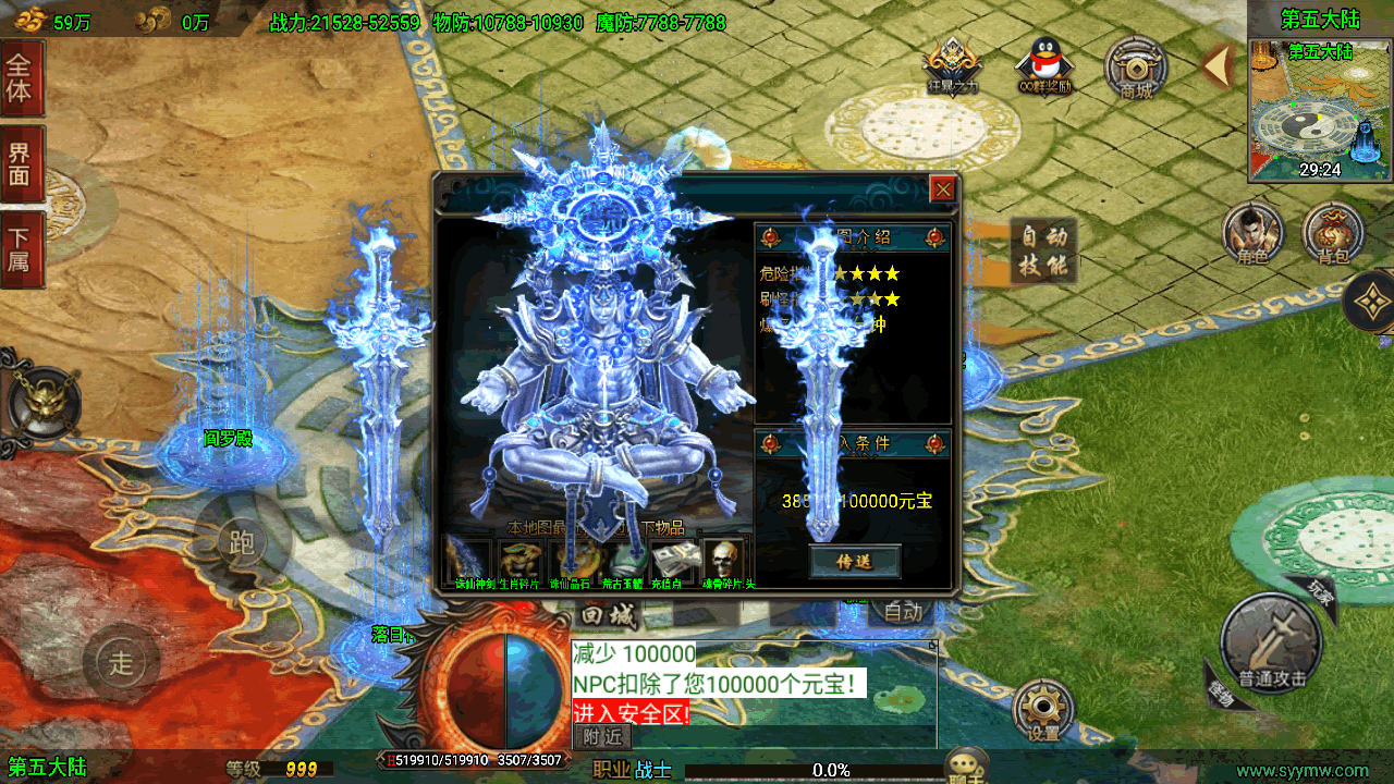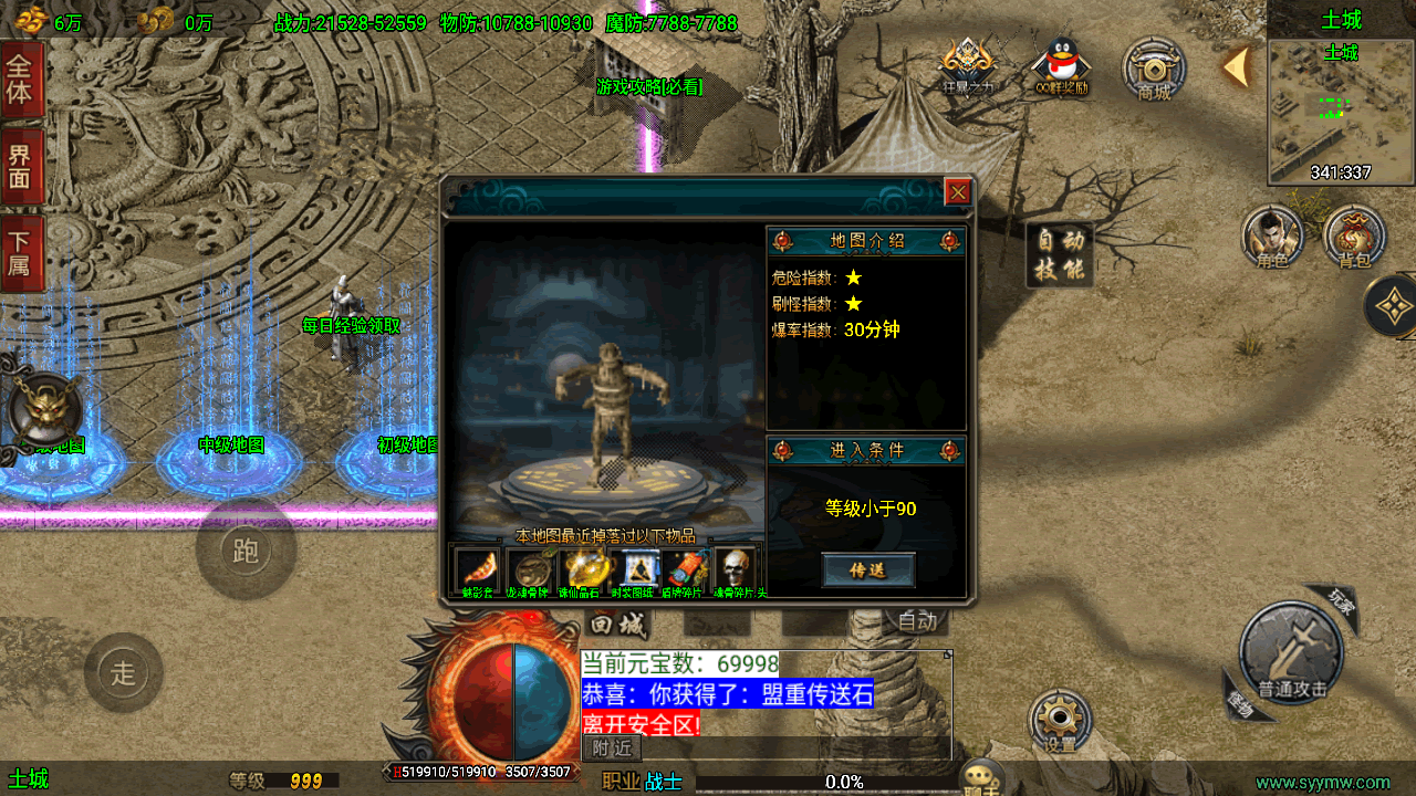 系统每天都会定时刷新世界BOSS,击败BOSS可以获得顶级装备和技能书。而且顶级装备爆率极高,技能书偶尔掉落。45级BOSS禁地魔王,战士击杀后一定概率掉落神装雷霆怒斩、神武战甲。同时一定几率掉落高级技能书突斩、金刚护体。