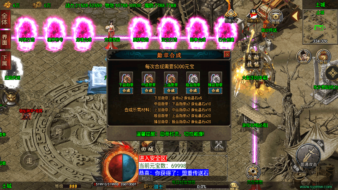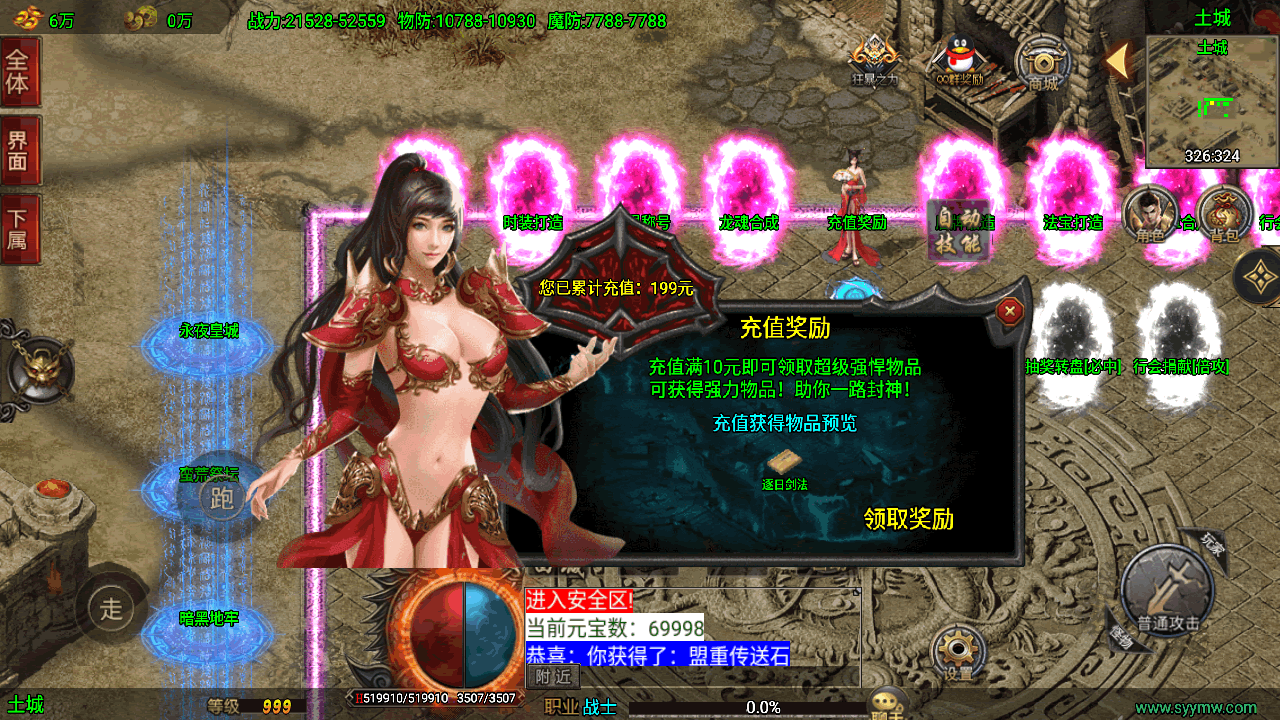 2、丰富传奇玩法,野外pk、皇城决战、激战boss、跨服帮战等多元化传奇玩法。