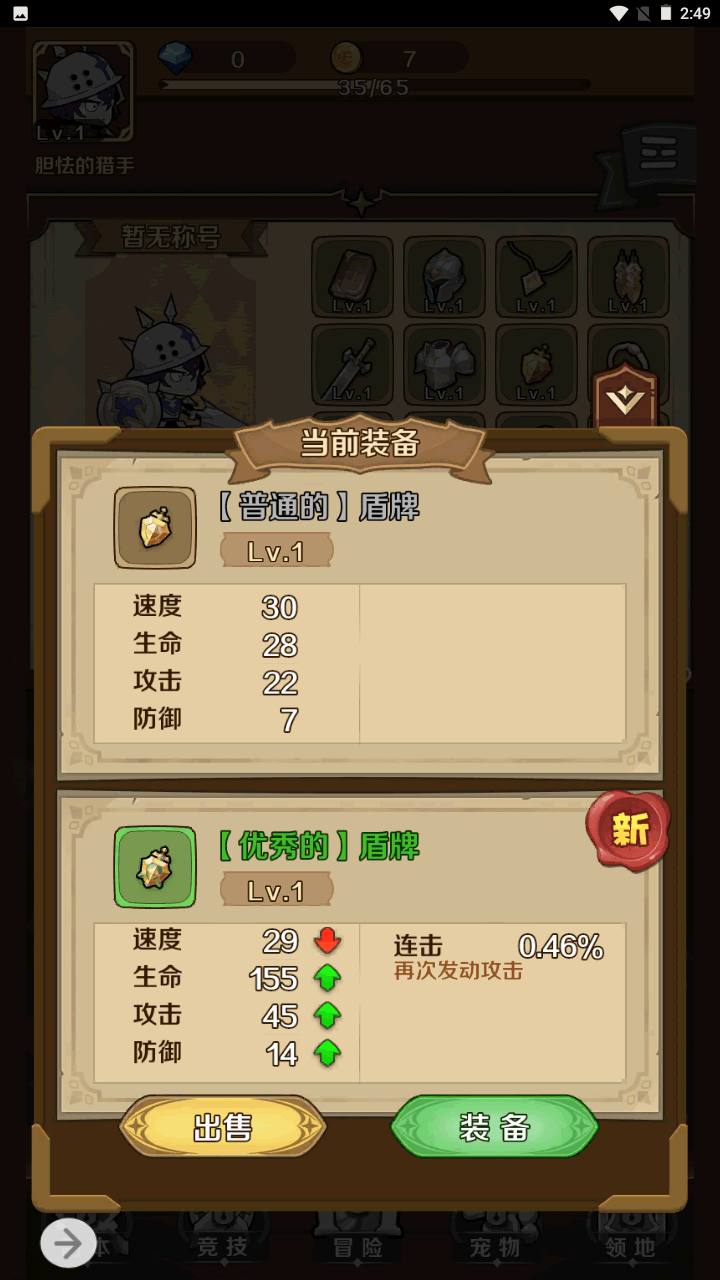 有了装备就可以去打怪闯关了,注意武器、盾、戒指有个进度条,等进度条满了之后就可以释放技能,武器是必杀一击、盾是格挡伤害、戒指是回血。