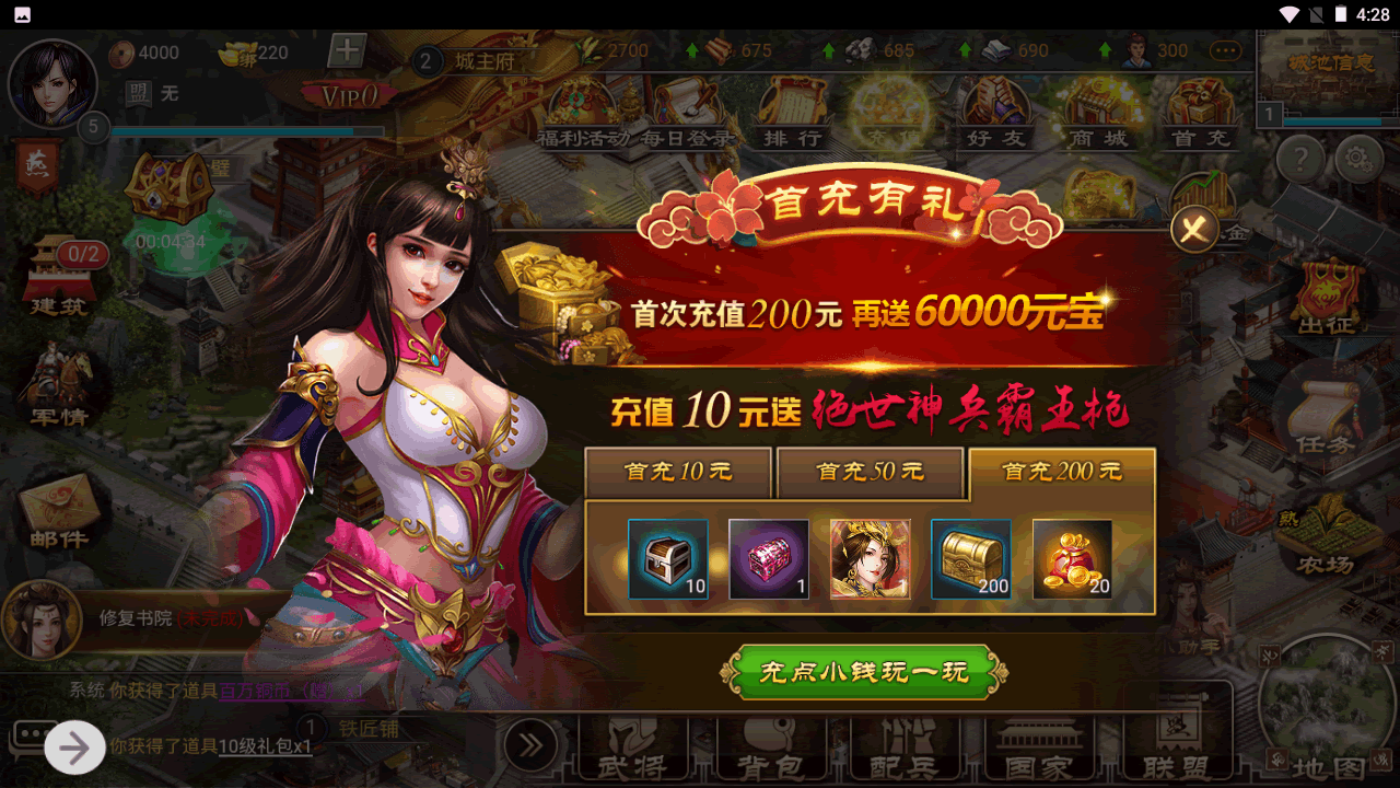 烽火中原游戏,开局一座城,招兵买马发展经济,烽火中原有你的一席之地,等你来战,不花钱的烽火中原游戏,恢弘的战斗场面,千人国战,万马驰骋,好玩的即时三国游戏。