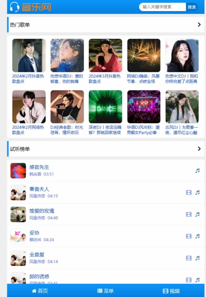 音乐试听外链站是 调用音乐app接口,将返回的信息进行解析获得解析地址,可实现在线播放以及调用视频及音频外链。