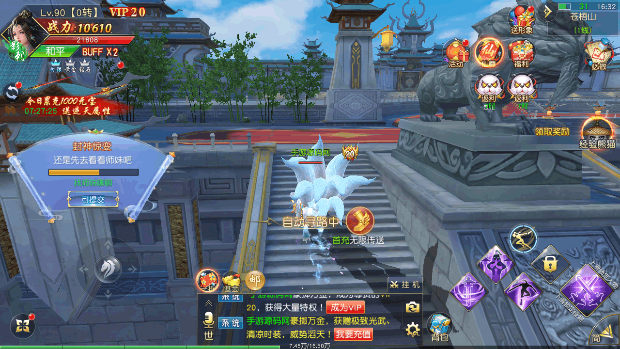 这是一款高清画质的3D仙侠手游巨作,突破传统玩法,即时战斗PK,轻功飞行,天神变身,魔王boss挑战,仙盟争霸等众多特色玩法,让你在修仙的世界里,享受非凡的热血战斗!更有酷炫时装武器外观,霸气羽翼,多种个性坐骑与你肩并肩战斗;聊天交友,在仙侠世界里寻找另一半,携手共进!