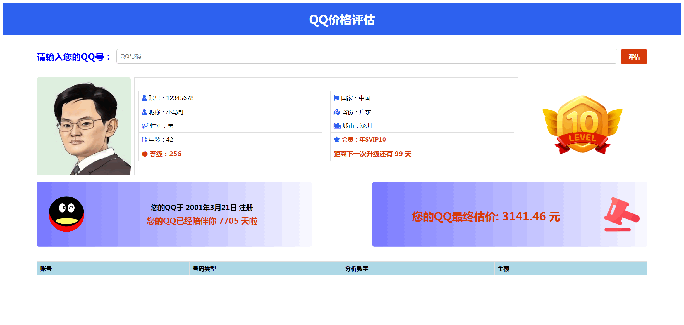 刷抖音的都知道,最近在上面很赚钱的项目,测QQ号的价值,这个项目无论是拉人气还是赚钱都是没话说的,本站在这里免费分享给群友,注册成为本站会员就可以免费下载。这个源码只有前端,包含激活码验证页,评估页,自行研究吧。