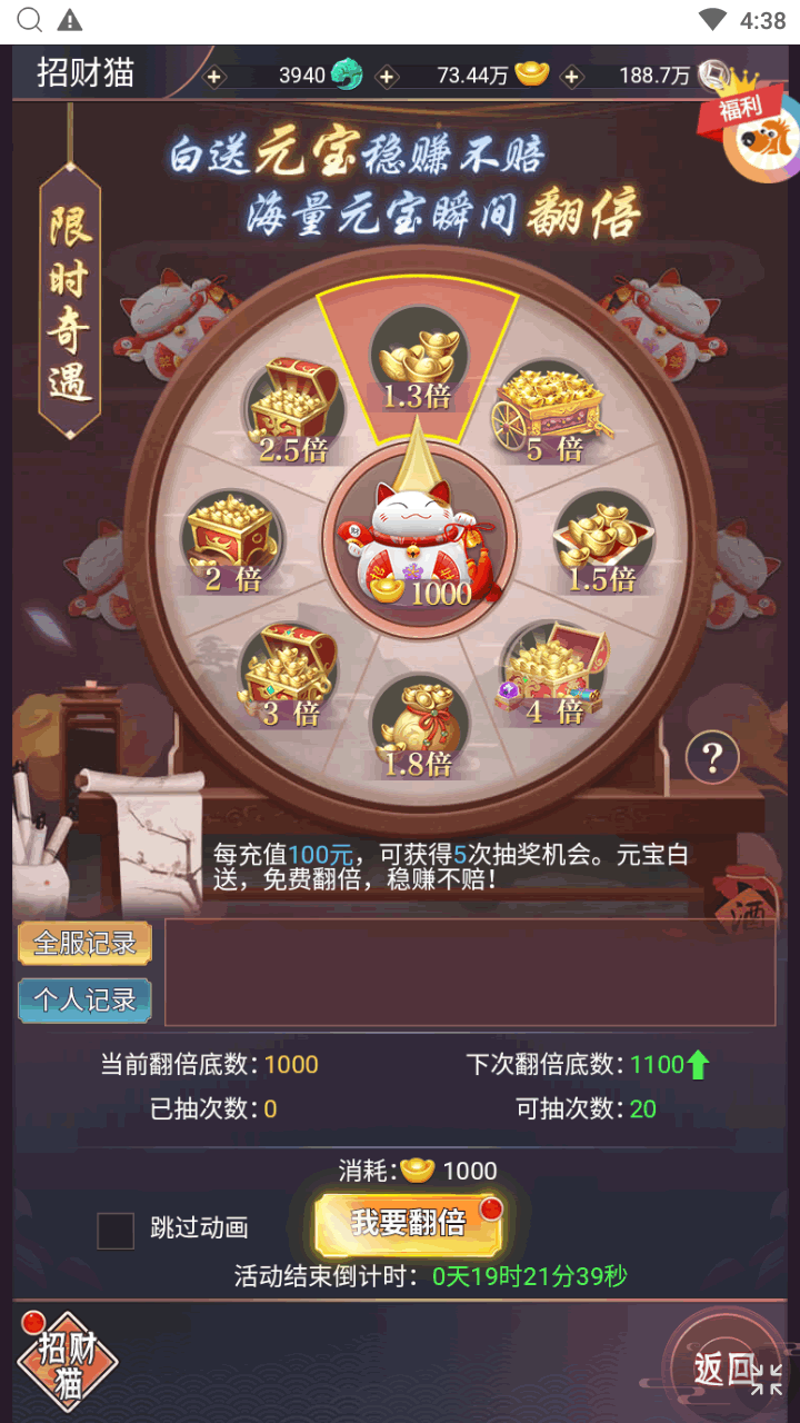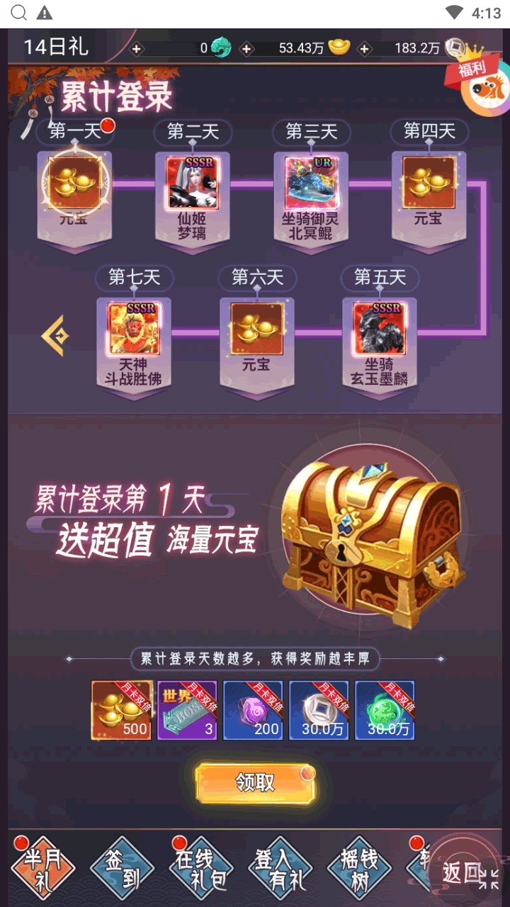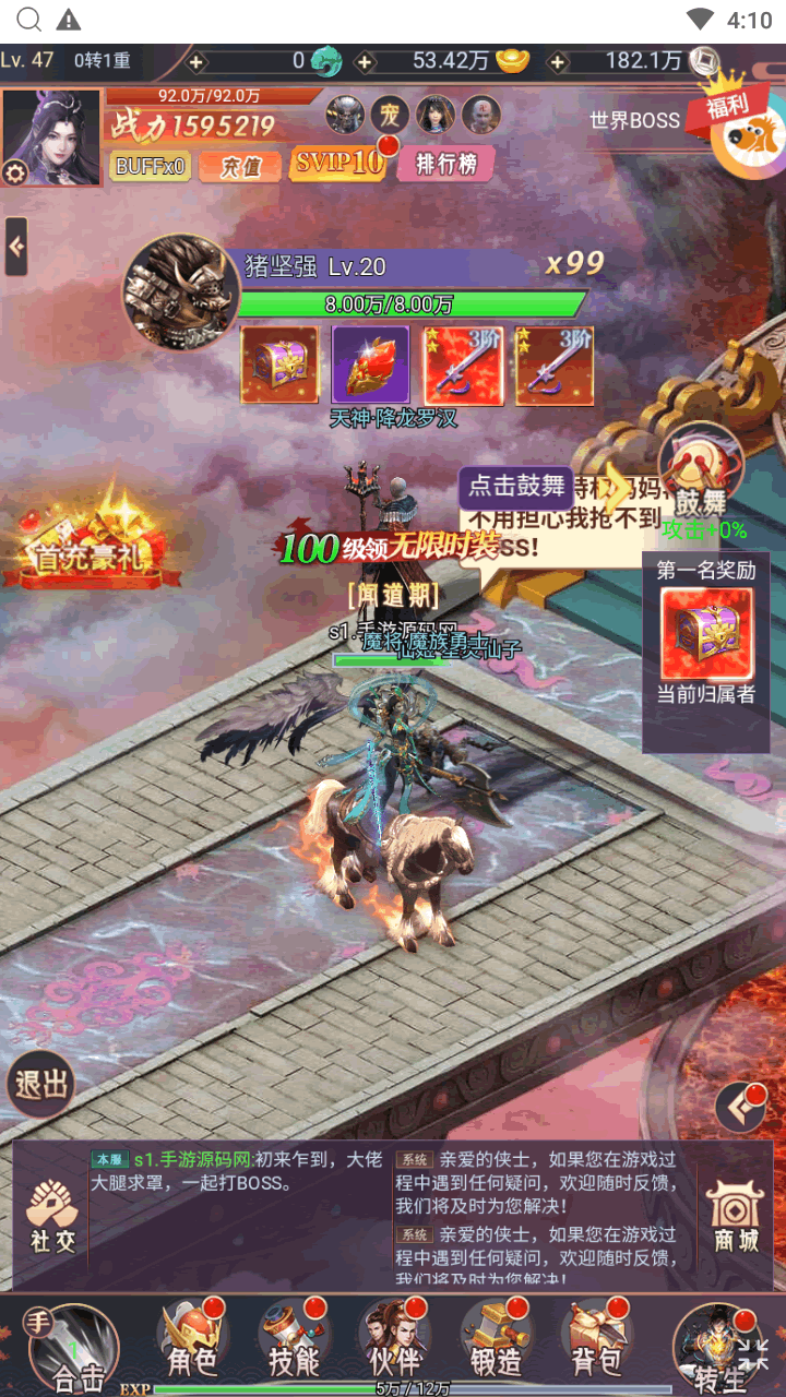 登录新服,即可参与万元真充活动,开服活动、签到活动、每日福利等,诸多福利活动花式放送不重样,绝版坐骑限量伙伴,零氪一样拥有,积累钻石材料资源专注战力提升,助力成就榜一大哥!