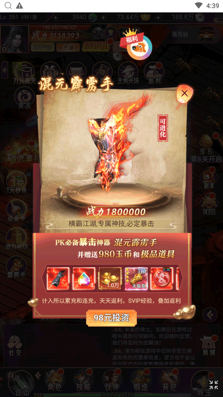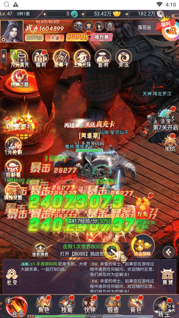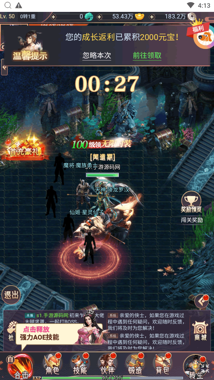 【酷炫技能,一刀秒杀全屏】 上百种酷炫技能任意释放,招招暴击,秒杀全服,体验酷爽战斗,收获双倍快乐。
