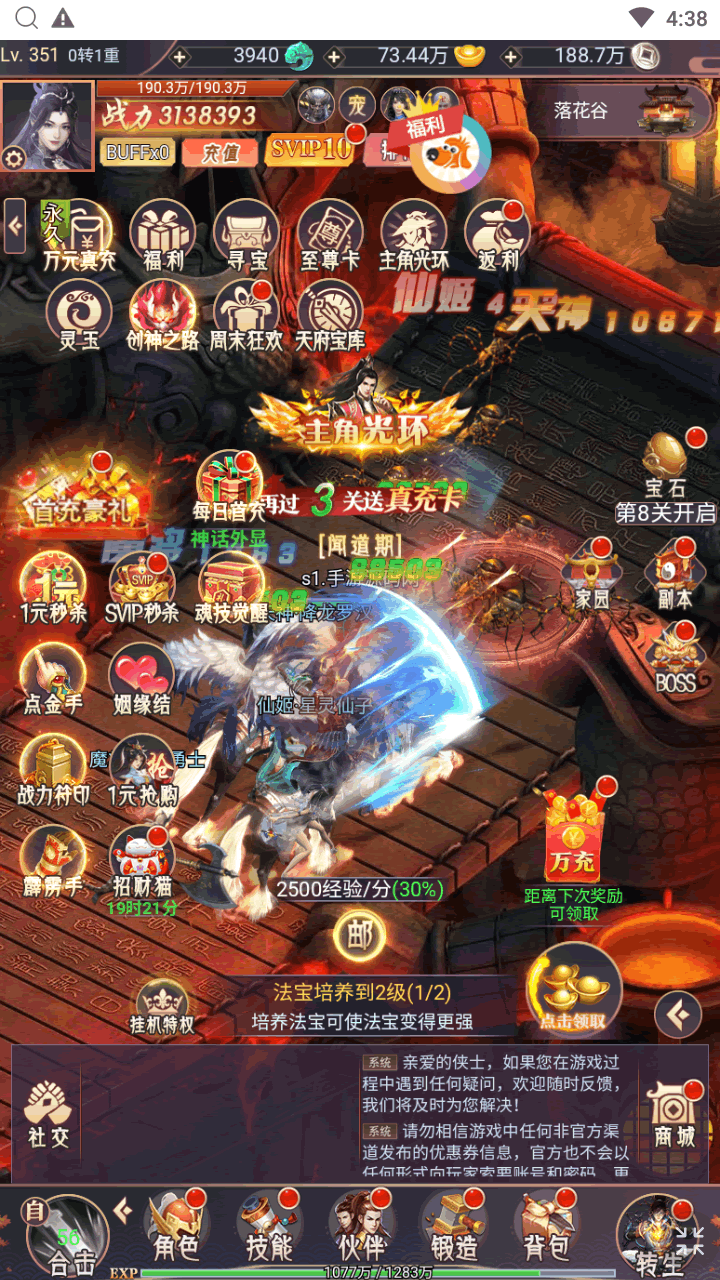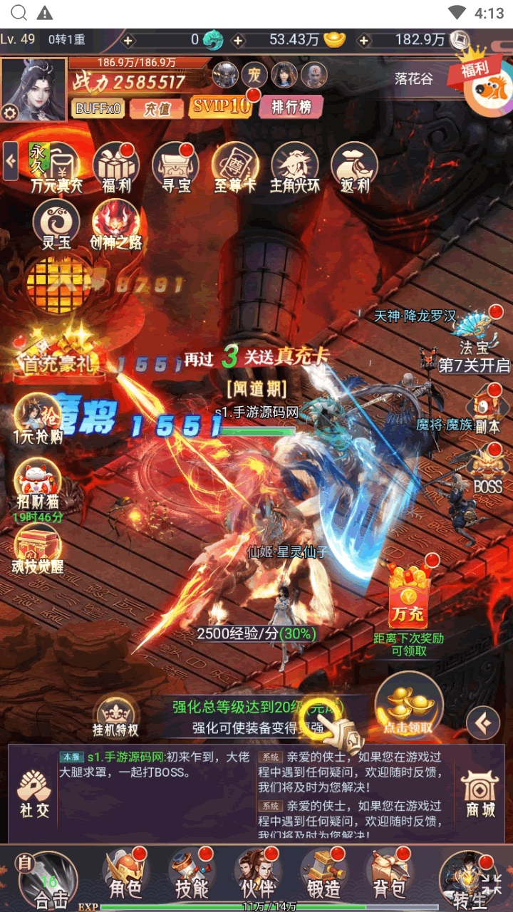 在游戏中可以体验到上百种神话中耳熟能详的魔将、灵宠、仙姬、天神伙伴特有的助战快感。