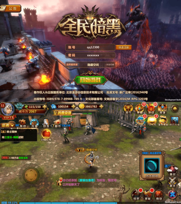游戏背景气势恢弘,3D顶级画面,高度还原暗黑魔幻世界。是游戏谷继《七雄争霸》、《全民主公》之后又一款受玩家欢迎的史诗级作品。《全民暗黑》拥有一流的游戏震撼打击感,国内首创的城堡攻防战,以及多人同屏实时在线的对抗玩法,让喜欢ARPG游戏的玩家获得更酸爽刺激的游戏体验。