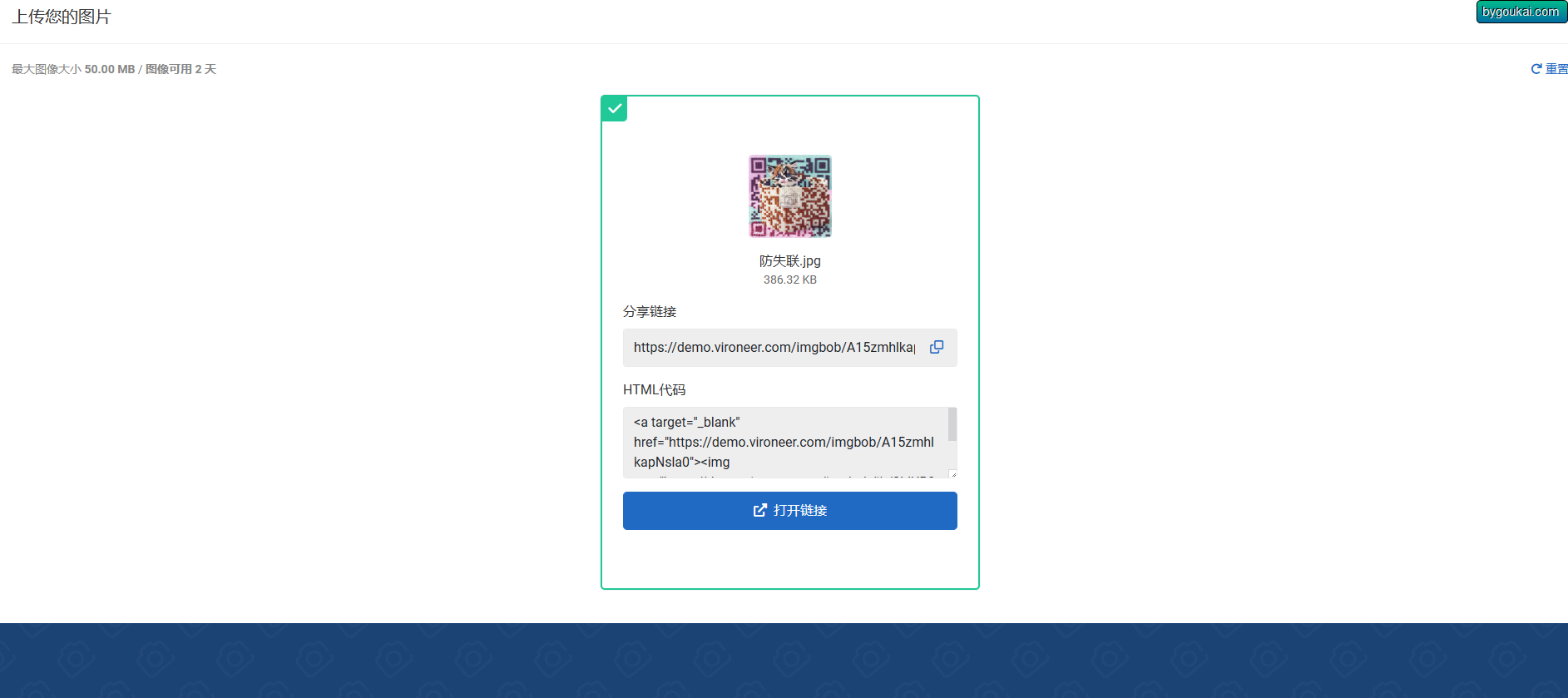 Imgbob 可让您创建一个图像托管网站,任何用户或任何访问者都可以通过选择它们或只需将它们拖动到主页上的任何位置来上传多个图像,上传进度是可见且直观的,并且可以预览上传的图像,并且上传的每个图像都有一个特定的 URL,可以在任何地方共享。