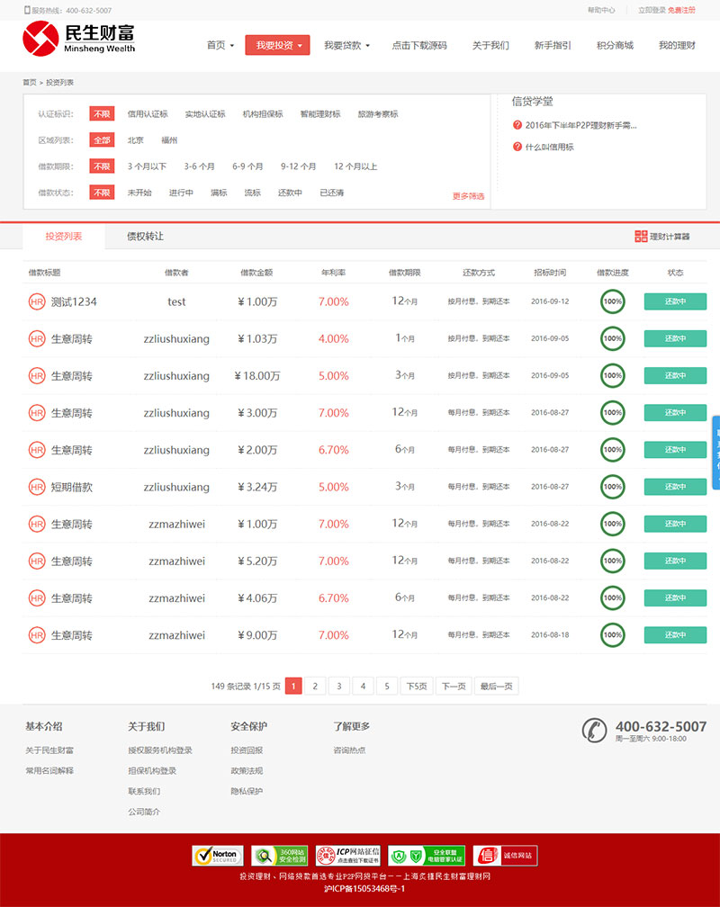 方维3.4专业P2P网络贷款借贷系统投资理财平台网站源码