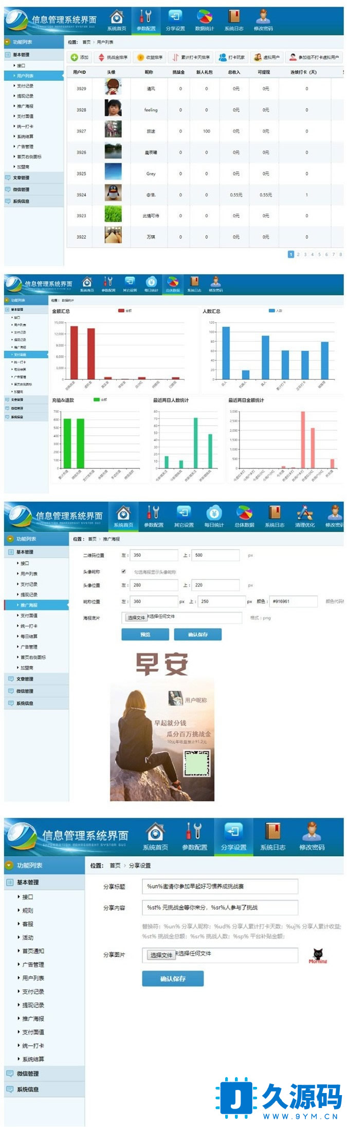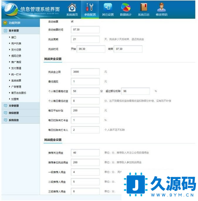 后台支持按日期/状态/昵称 查看,筛选用户的提现记录,打卡记录,押金记录9、支持3级分销,已经开发好三级的分销绑定。