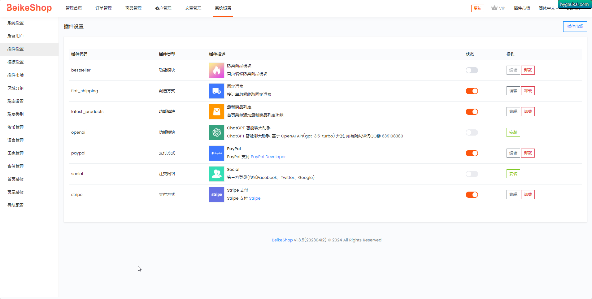 BeikeShop 一款开源好用的跨境电商系统,BeikeShop 是基于 Laravel 开发的一款开源商城系统主要面向外贸/跨境电商行业提供商品管理、订单管理、会员管理、支付、物流、系统管理等功能。 插件市场支持个人免签