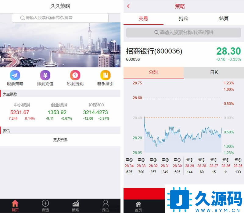 明日策略股票配资网站源码完美运营版+自适应手机端+封装APP 网友购于某源码站上的一款股票配资源码!售价高达三四千元!服务器上直接打包程序,没有任何教程,有能力的下载! 系统完美可运营,后台可开代理,源码可以封装APP! 投资策略匹配资金倍数灵活可选 T+1/d交易、线上入金、实时开户实盘交易 自动计算利息/收取利息、自动结算、提现申请 T日买入T+1日卖出,只在买入时收取买入市值的综合手续费。T+1日未卖出 每交易日自动收取下一交易日延期费,实时盈亏后台可查阅,后台可人工强平。 测试环境:PHP+MYSQL 核心代码加密,但不影响二次开发,该源码无教程。