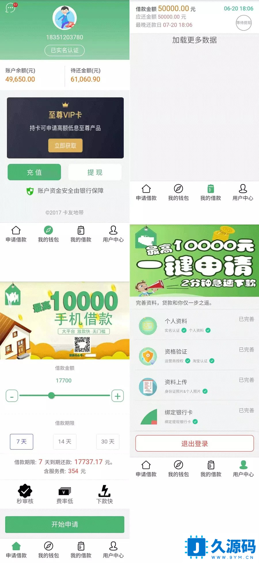 ThinkPHP5开发的小额贷款源码,可按天和月选择贷款模式,源码带vip会员卡,可二开! 文件包内附易连支付开发文档。搭建方法在群文件中。 高度的自由化设置: 1,设置借款金额和周期 2,选择按月还是按日计算 3,能否需要邀请注册 4,能否需要提现码设置 5,能否开启服务费(贷款先息后本还是先本后息)等 6,多渠道管理 分别的网址注册 分别统计注册量