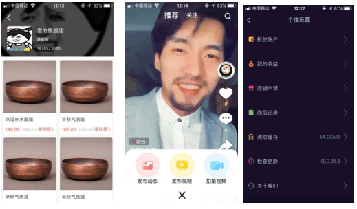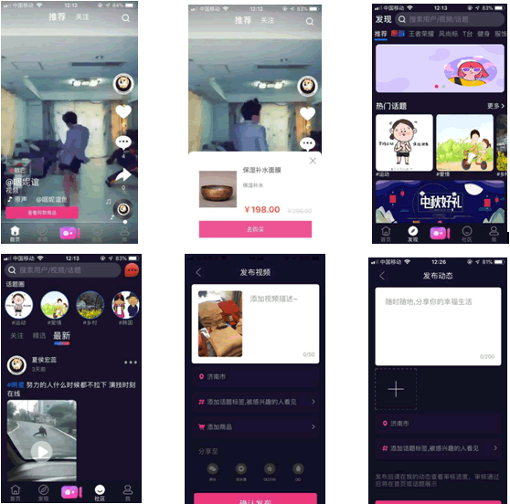 | 推荐 | 后台编辑推荐视频。点击播放,点赞,评论,转发,或进入店铺,查看视频同款 | ||