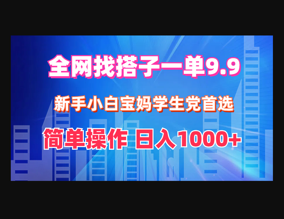 给大家分享一个很适合小白上手的一个项目,找搭子项目,找搭子:年轻人特别是学生,打游戏需要找一个搭子,或者聊天搭子,谈对象搭子等等一个找共同爱好的地方,我们叫找搭子,需求非常大,这个项目的原理就是在抖音快手等平台发布作品引流到公众号自动成交,用户付9.9进群费之后系统会自动引导客户进搭子群。如何制作作品后面会教,自动成交和进群系统我给你提供,全国400多个地区的群都有。