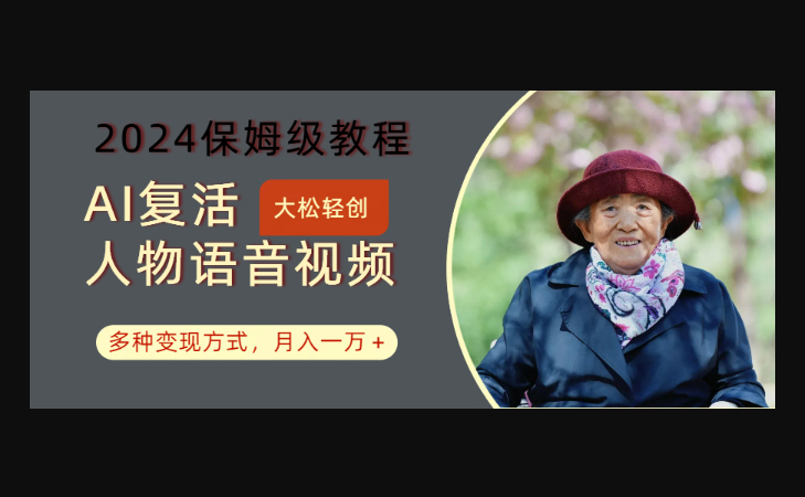 AI复活赛道如今特别火,相信国内未来AI技术会越来越NB,大松今天给大家带来一个流量很高的AI复活人物的课堂教学,目前引入了声音克隆技术,目前属于全网最新玩法主打的就是一个信息差,学到就是赚到,实操教程比较简单,处理熟练之后10分钟搞好一个视频,一天轻易做30段视频,随后有多平台发,产生睡后收入,还不赶紧学起来!!!