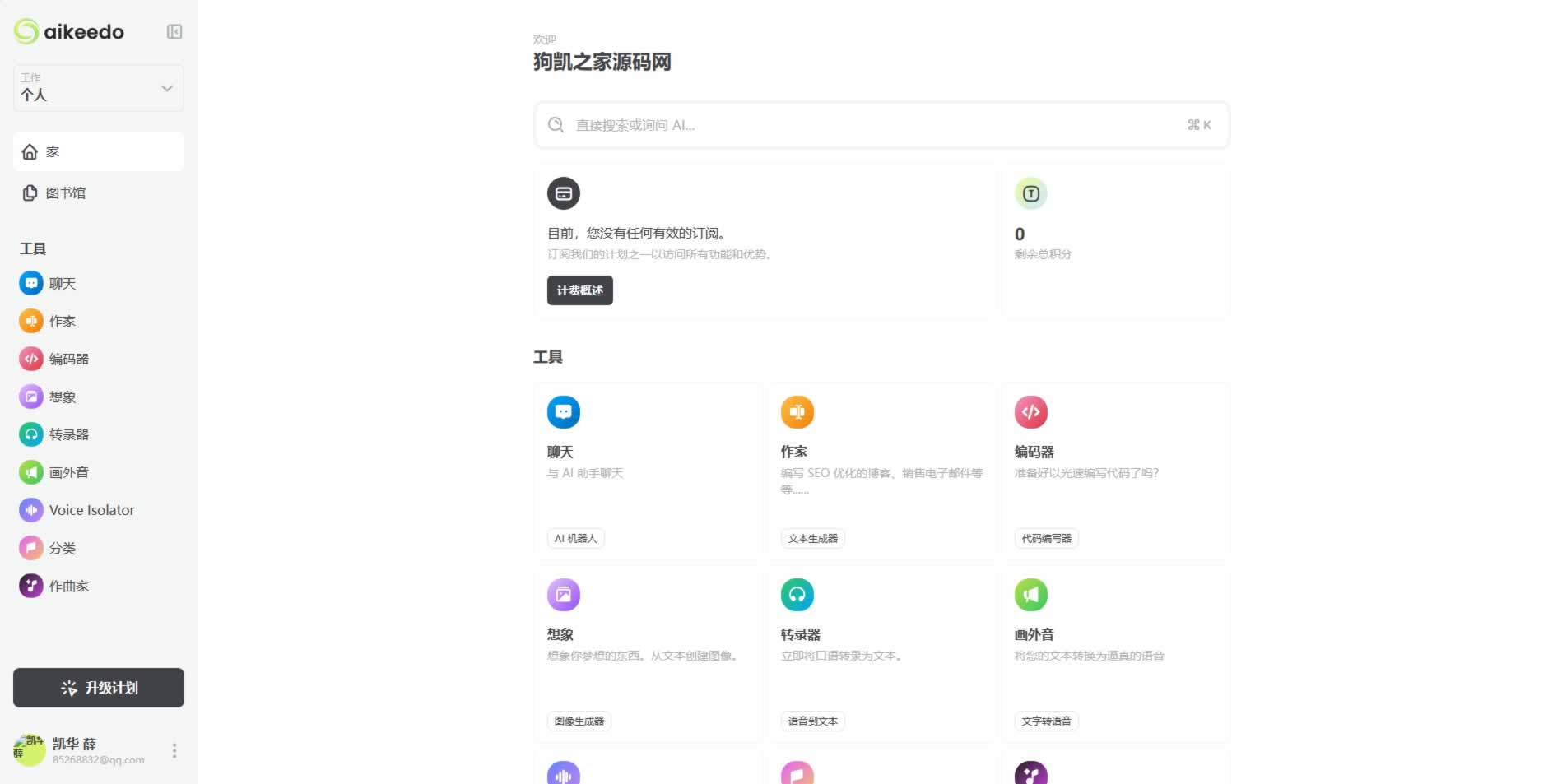 Aikeedo 是一个创意强国,利用最新的 AI 技术,包括 GPT3.5、GPT4、ElevenLabs、Dall-E 和 Whisper,提供一系列创新功能。借助其 AI 文本生成器,用户可以毫不费力地创建丰富、引人入胜的内容,而 AI 图像生成器将视觉创意变为现实。