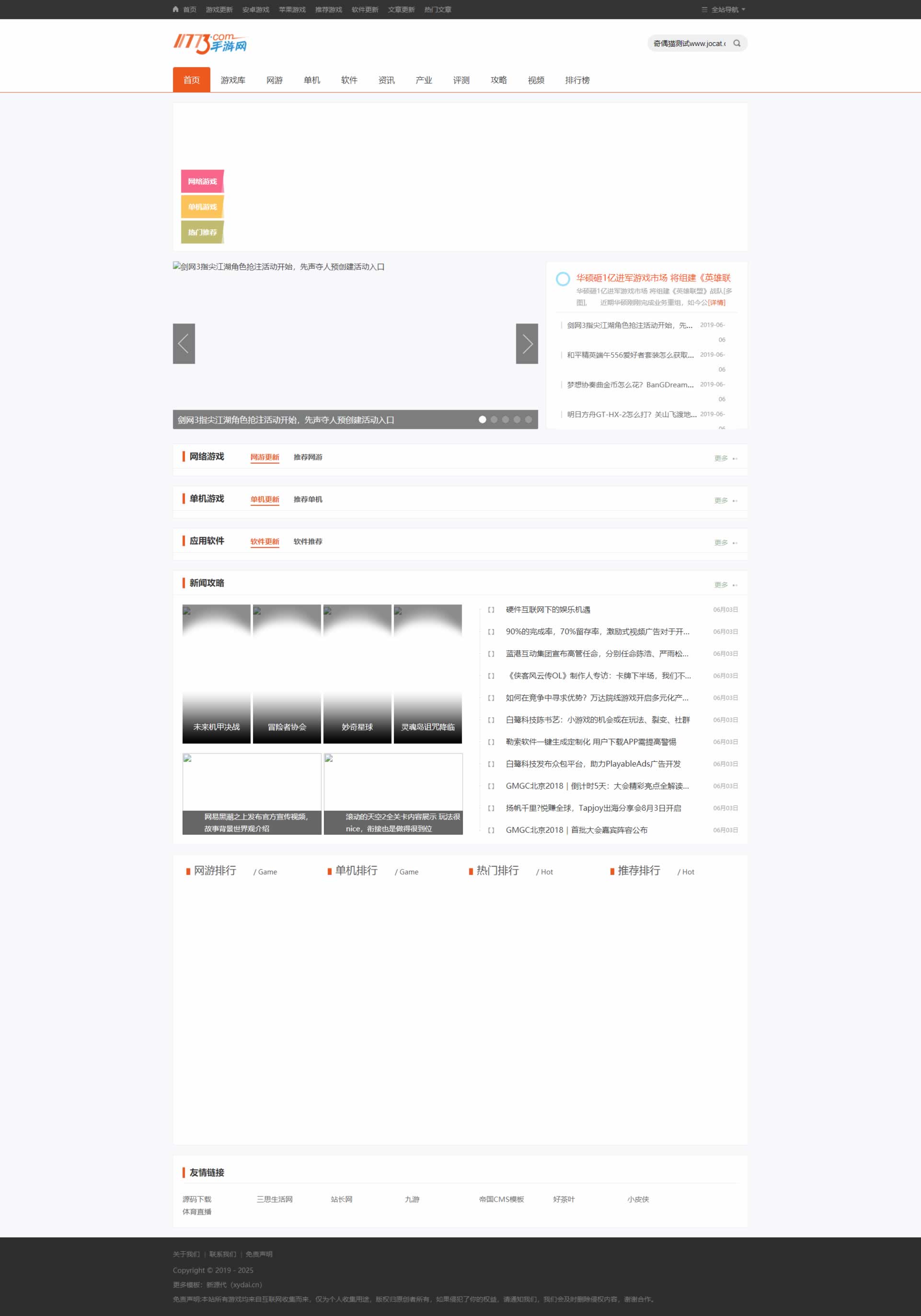 帝国CMS 7.5高仿《11773手游》源码,手机游戏软件下载门户网站模板。简洁漂亮的手游下载网站模板,采用帝国CMS7.5核心,同步刷新M端。
