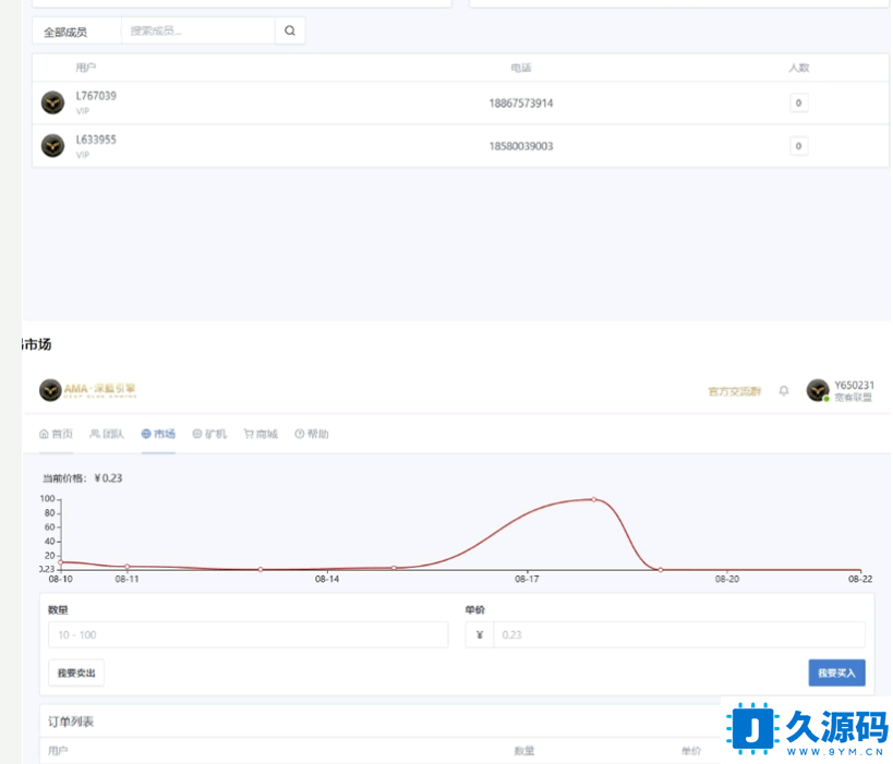 初级矿商:直推80人,团队总人数320人,可得1代1%,2代0.1%,34代0.01%,奖励贵宾矿机一台