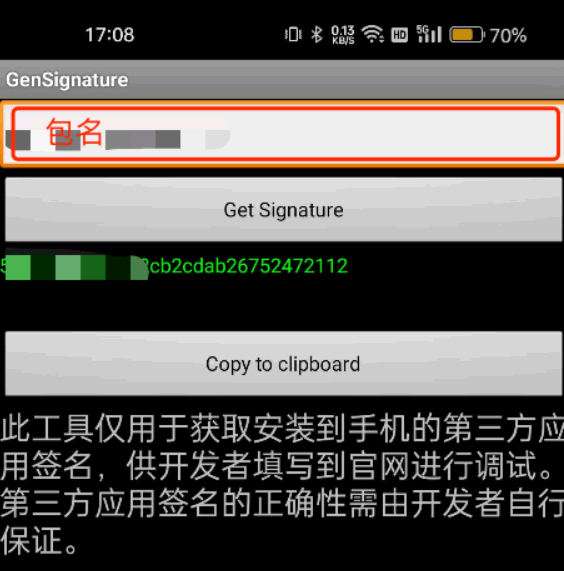 输入包名,生成应用签名