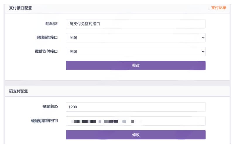 商城后台支付接口配置,选择码支付保存刷新,会出现码支付的配置选项