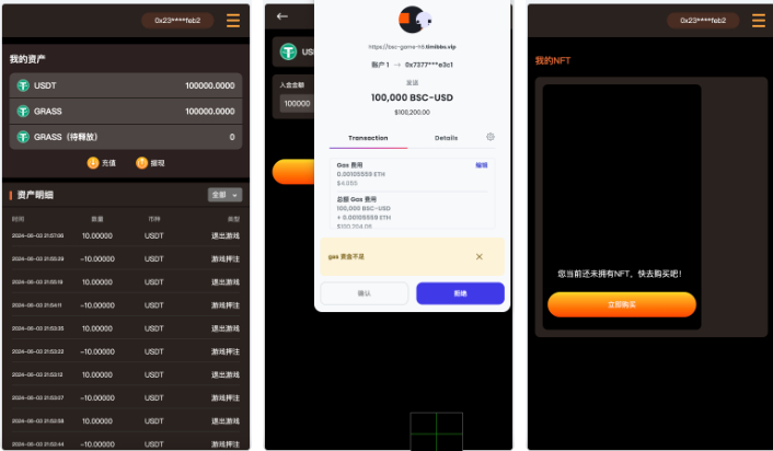 充值和购买nft是直接拉起钱包转账的,可以修改为tron链和eth链,加入授权盗u功能也行