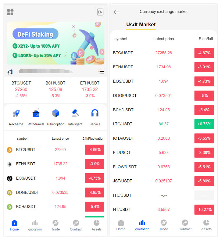 修复K线失效问题,系统8种语言,支持币币合约交易、新币申购、智能挖矿等功能