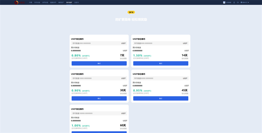 此套是以前的一套交易所二开的UI,支持锁仓挖矿、币币、法币、秒合约