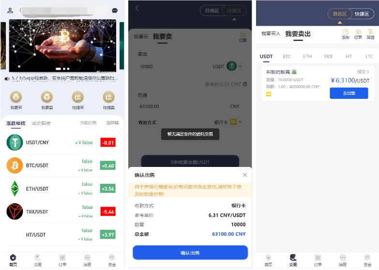 系统符合正常usdt场外交易操作流程,支持在线发布出售、购买订单,也支持自由购买